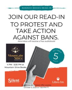 Mark your calendars! Mountain Shire Books will be kicking off Banned Books Week with a Silent Book Club Read-In to protest against book bans. This year’s theme, Censorship is so 1984, and we invite you to raise awareness with us to the current efforts to ban books and information across the country. The #BannedBooksWeek theme reminds us that the right to read belongs to all of us. Censorship has no place in contemporary society, and we must defend our rights. Attendees will receive a free audiobook copy of “Lula Dean’s Little Library of Banned Books”